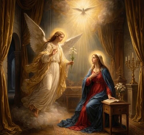 This day commemorates the day on which the Virgin Mary became the Mother of God. It was in the midst of prayer when the angel appeared to her. When she is referred to as “full of grace” it implies that she was pleasing to God in the highest degree. The angel did not command Our Lady but requested her consent to this greatest of all vocations. It was only because of her esteem for the angelic virtue of purity that she asked how this could happen. The Virgin Mary was truly heroic by choosing to sacrifice her life of secluded contemplation for a life fraught with sufferings. She realized the dignity and responsibility of the path laid out for her, yet she had no hesitation because of her absolute trust in divine assistance.
